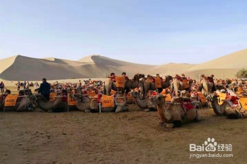 第五天:第四天晚上就在敦煌民宿休息一晚,莫高窟外一两公里的地方很多民宿,环境清幽,价格便宜。大标间一晚80-100元,并提供就餐。带了帐篷的旅游者们可以去鸣沙山月牙泉露宿。在《月牙泉》的歌声里,体会不一样的心境。我们是第二天早上去的月牙泉,月牙泉外有骆驼队。160元/人,可以绕着沙丘走一圈,风沙大,戴防晒围巾最好。“滑沙”40元/人可以去体验下。