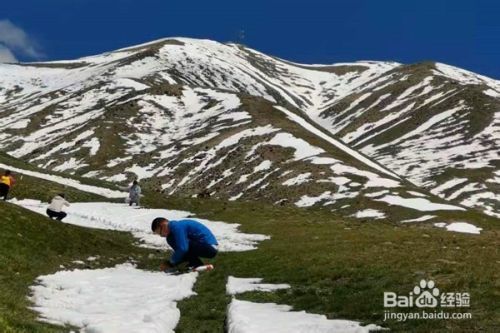当靠近当金山脚下,艳阳高照,远远的看到山顶一片白雪还未融化,山风吹来,似乎还有星星点点的黄色小花在阳光下招呼我们,周围静得出奇。我们忍不住欢心雀跃的下了车,打算攀上山顶。但看似短短的路程,却是走了很久还没能触及山腰。山坡上有很多疑似大型穴居动物的“洞口”,我们不敢继续深入,转而开车绕路上了山顶。风中带着花香,是一种紫色植物所散发。