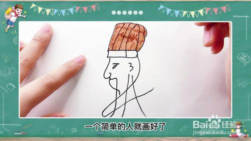 首先用笔在白纸上画个长方形当做人的帽子