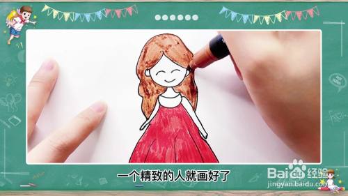 最后用彩笔涂出颜色,一个精致的人就画好了。