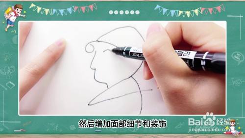 然后增加面部细节和装饰,接着画出人的眼睛和嘴巴