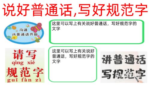 最后在手抄报的空白处画出文字框,并写上有关的文字。这样,一幅说好普通话,写好规范字的手抄报就制作完成了。