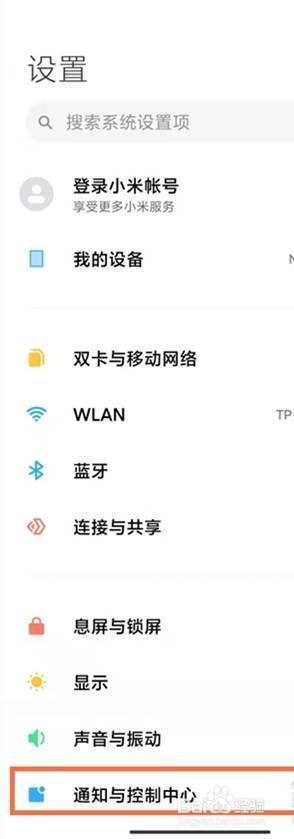 打开手机设置,点击【通知与控制中心】,