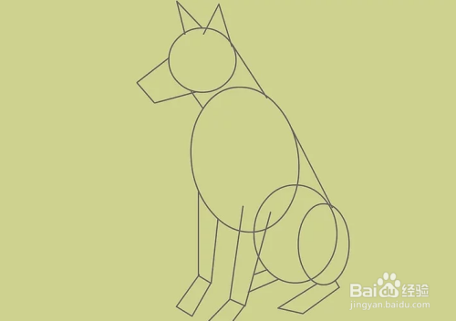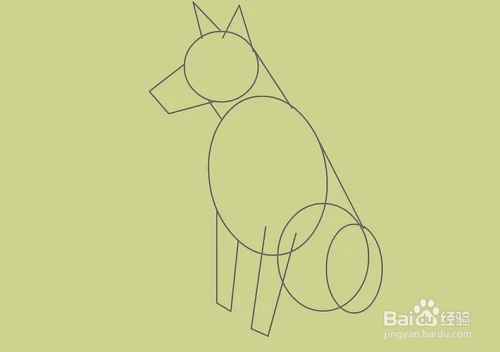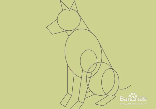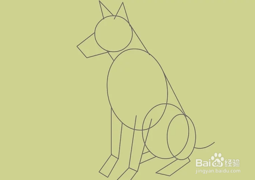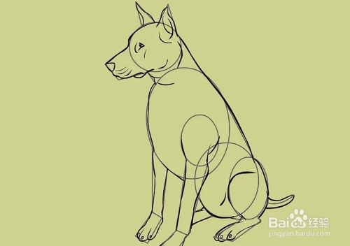 用你迄今画的形状画出狗的大致轮廓。开始填写细节,比如狗的眼睛、鼻子、嘴、指甲和耳朵。