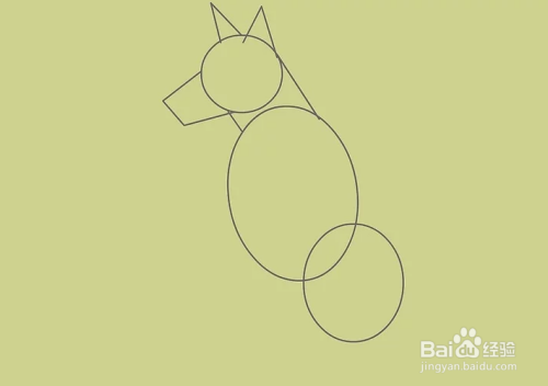 画一个较小的垂直椭圆形与较大的底部重叠。这将是狗的下半身。