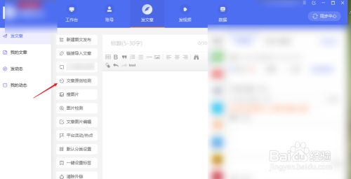 登录帐号之后点击“发文章”。可以在这个页面进行文章内容的编辑,也可以进行文章原创度检测以及图片检测。
