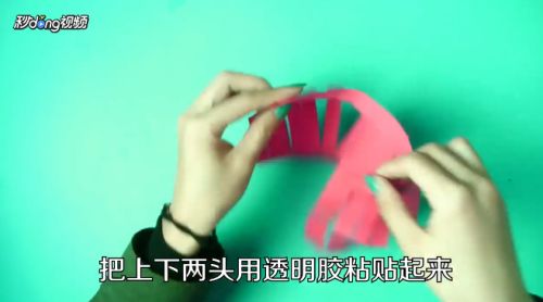 5上下两头用透明胶粘起来,这样花灯就制作完成。