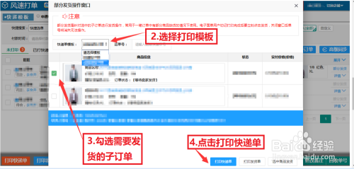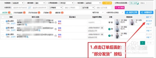进去待发货页面,选择要进行部分发货的订单,打开部分发货界面