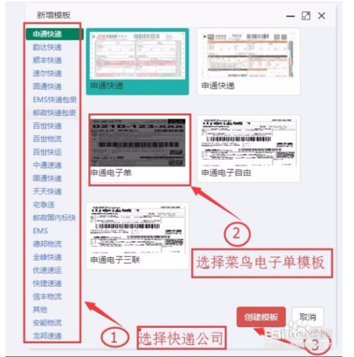 添加模板:点击软件顶部模板管理-快递单模板-添加新模板(如店铺已正常开通菜鸟电子单服务,软件订购后模板也是自动添加的,可以省略手动添加这步)
