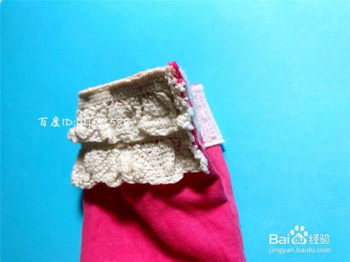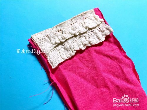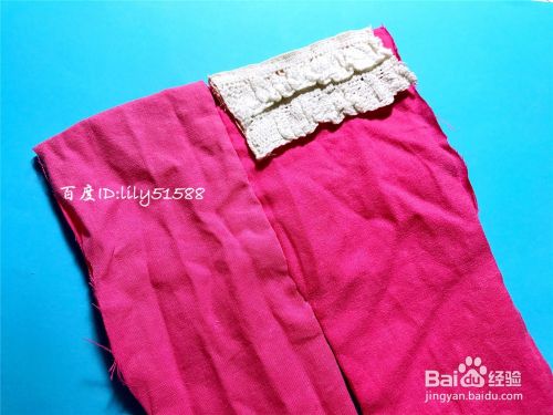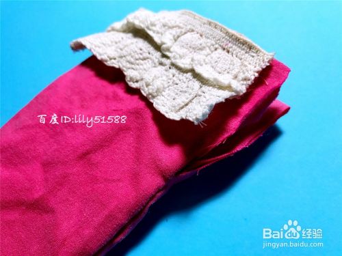 把蕾丝缝合在前面一块的长方形布最上边,如下图;