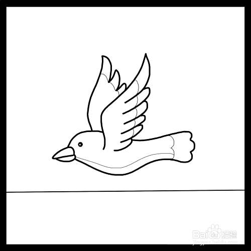 如图,接着画出一条直线,接着画出海鸥身上的线条图案。