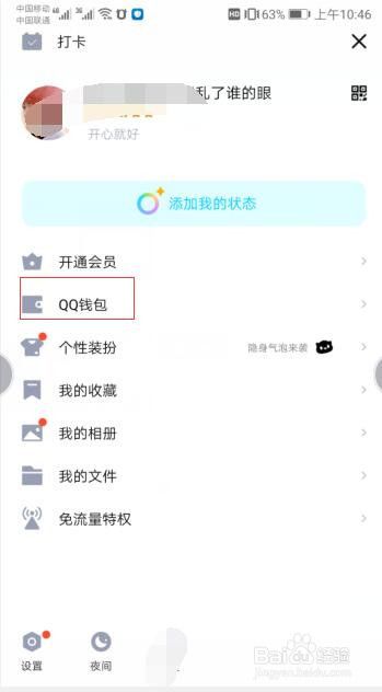 此时在打开的界面中,然后点击“QQ钱包”选项。