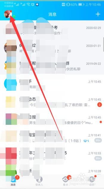 此时打开了手机QQ的软件,然后点击右上角的头像位置。