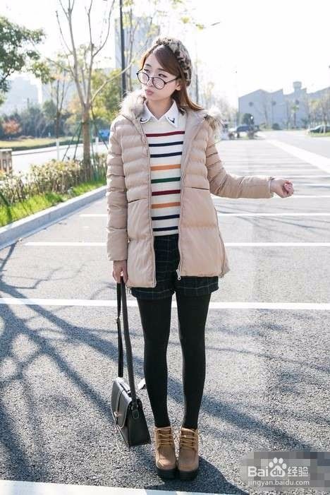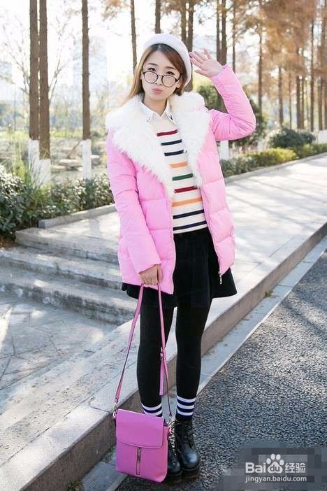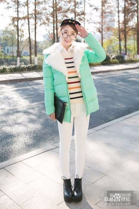 甜美的糖果色棉服,大大的V领还有温暖的毛绒呢~七彩的条纹毛衣做内搭,甜美可人。冬天不臃肿的羽绒服穿法 短款羽绒服搭配图片,教你冬季保暖拒绝臃肿搭出好身材~