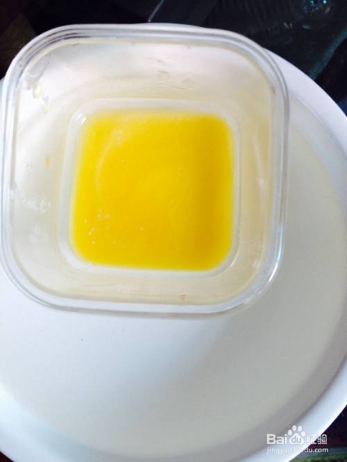黄油隔水加热融化成液体,倒入搅拌均匀。