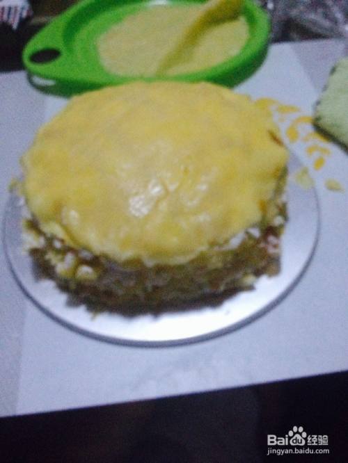 饼皮--奶油--饼皮……饼皮。铺完全部饼皮就完工了。