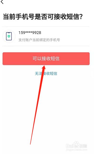 在弹出的页面,当前手机号码是否可接收短信,点击可以接收短信;