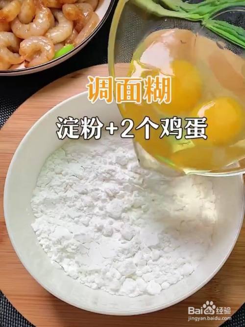 调面糊:半碗淀粉加入2个鸡蛋,搅拌成液体