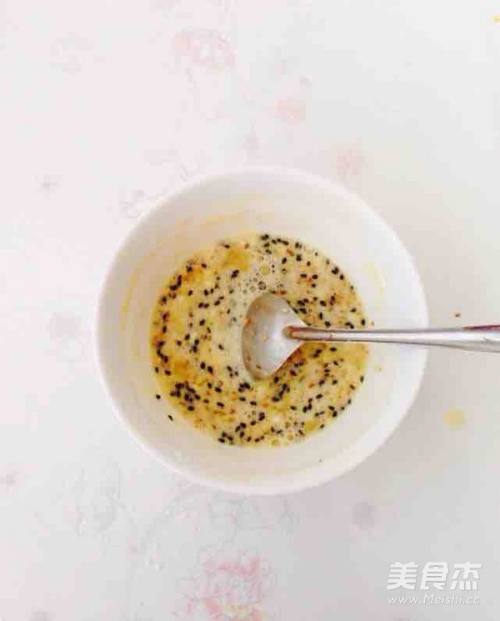 3放入黑色和白色芝麻,盐搅打均匀至蛋液状。