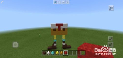 裤子宽度为7格,中间一格留下,用“红色羊毛”块填充,这是领带;