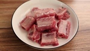 准备300克左右肋排,切成大小均匀的段状。自己不会切的话就买处理好的排骨段,不然会砍的很磕碜的,毕竟排骨那么贵,当然要砍好看一点不是。