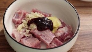 洗好的排骨挤干水分,加入几片生姜,1大勺蒜末,1勺食用盐,少许胡椒粉,再加入1勺耗油,用筷子搅拌均匀腌制30分钟以上。条件允许的话可以腌制过夜,这样会更入味一点。
