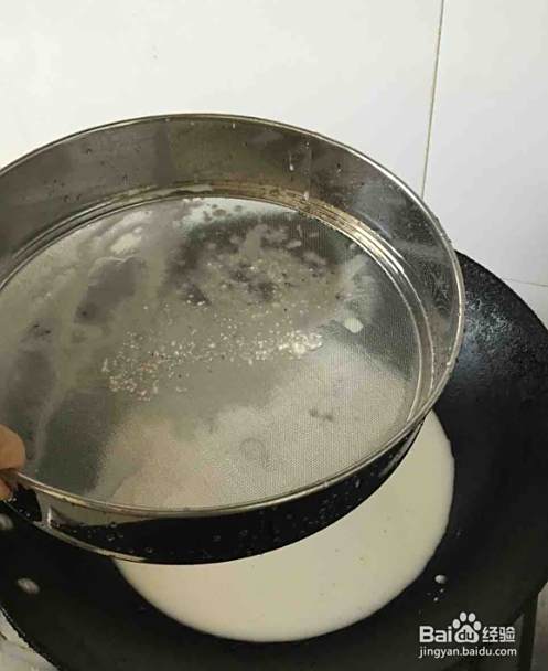 把淀粉里的渣过滤掉,淀粉直接过滤到炒锅里。