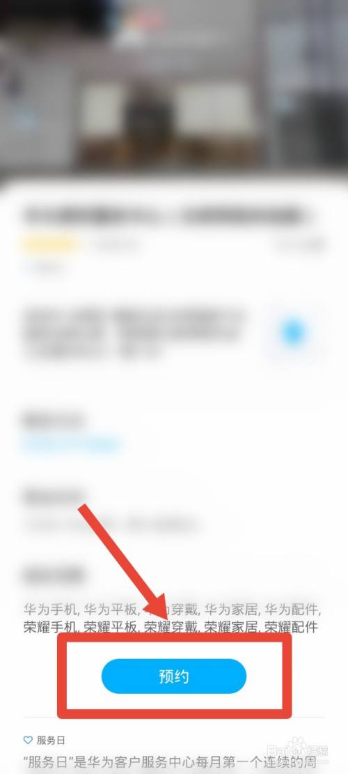 第五步,最后下拉页面,在所选售后服务点下方点击“预约”,即可申请华为手机售后服务。
