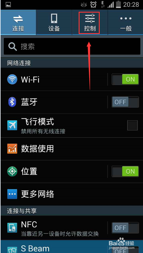 第三步:进入手机设置以后,选择上方控制一项,进入控制页面设置