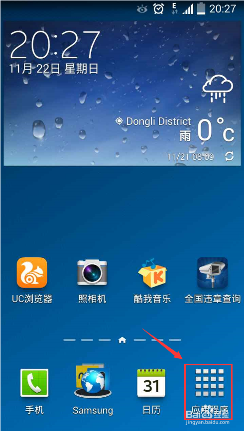 第一步:首先我们打开手机主页,点击右下角的应用程序按钮,进入应用程序菜单