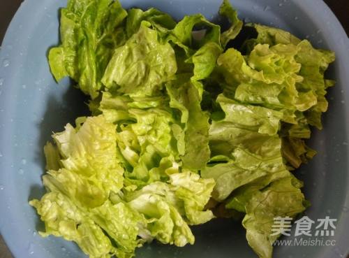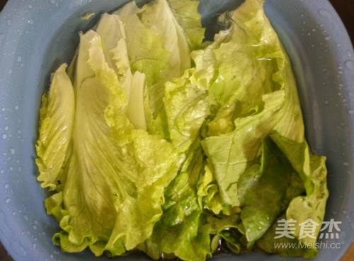 生菜掰开叶片,加少许盐用清水浸泡