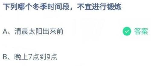 蚂蚁庄园下列哪个冬季时间段,不宜进行锻炼?下面就来看一下正确答案是什么。