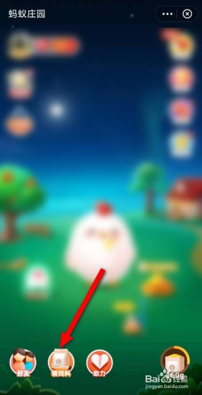 打开支付宝,点击蚂蚁庄园里面的领饲料。