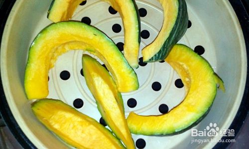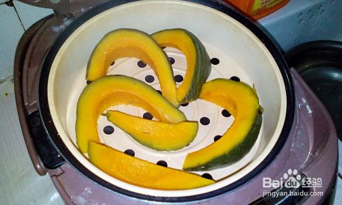 把南瓜块放入屉上蒸熟