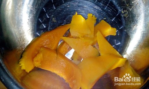把南瓜的皮去掉弄成泥,加入适量的白糖
