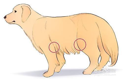 由于“金毛寻回犬”很健壮,因此请画出比肋骨区域(人体下部)大的代表肋骨周长的圆圈(人体上部)。