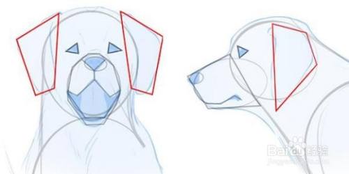 耳朵从头后部的底部向下延伸到前部。尝试将下垂的表面捕获为三角形或矩形并进行绘制,以使其覆盖您的脸部两侧。