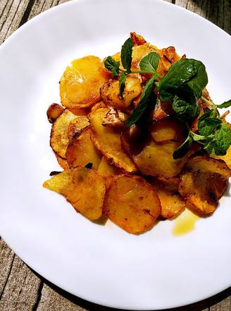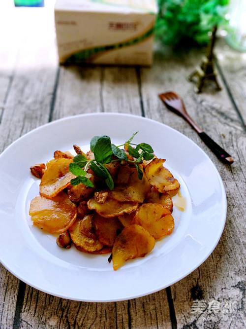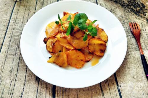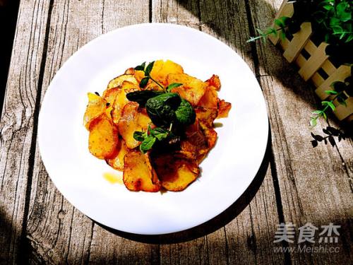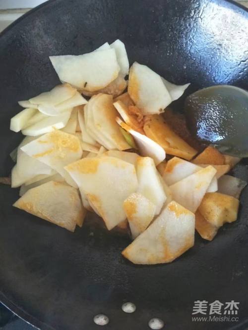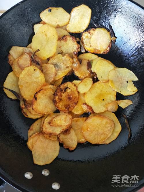 8不要加水,慢慢翻炒,让每个土豆片都吸收上调料,