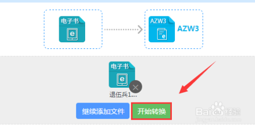 将电子书文件添加到转换装置中,这时候我们可以选择继续添加文件,也可以开始转换文件。最后点击开始转换文件,这时候文件就转换成AZW3文件了。