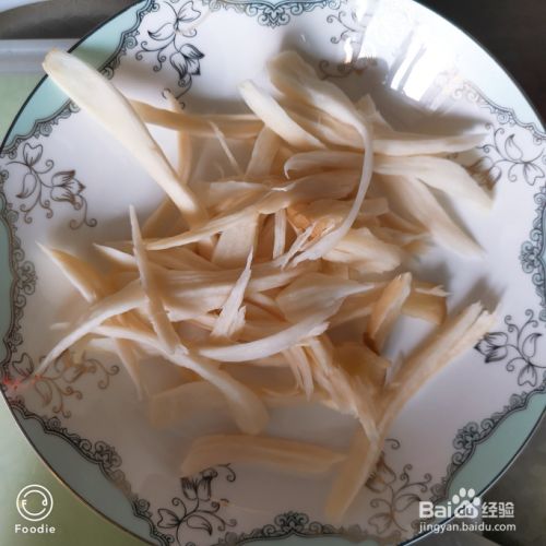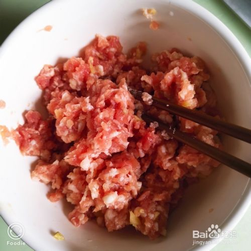 取适量生姜,切块,放入肉沫中,加入料酒和盐,拌匀