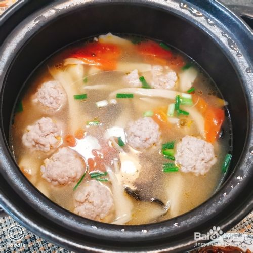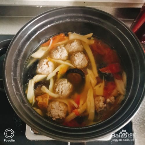 烹调一段时间后,加入肉丸。因为我在汤里加点水,再加点盐