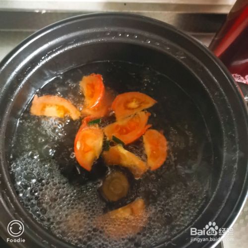昨天剩下的骨头汤,里面本来就有香菇和木耳,我就没有再放,加入切好的番茄