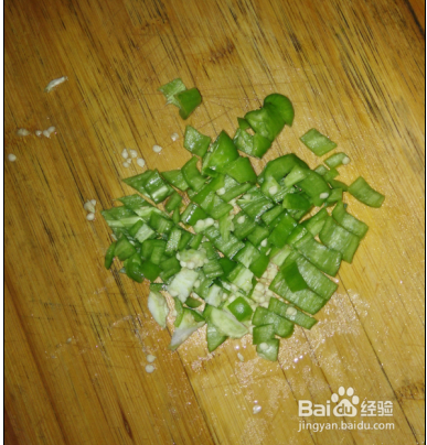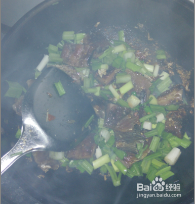 翻炒五分钟后,倒入之前切好的芹菜和青蒜,用来去腥。