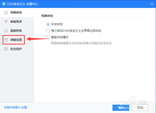 在“设置中心”界面,点击左侧列表中的“弹窗设置”项。见下图