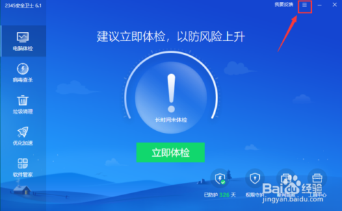 打开2345安全卫士主界面后,点击右上方主菜单“三”图标。见下图