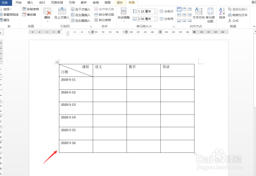 然后,找到表格工具的“布局”选项卡。
