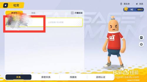 香肠派对查看关注玩家的亲密关系在社交关系界面选择关注的玩家,选择红框内的爱心图标,即可查看到该玩家的亲密关系,具体操作方法如下: