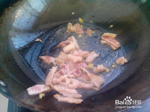 开始加热炒锅,等锅热后倒入适量的食用油,然后先放入里脊肉开始煸炒。