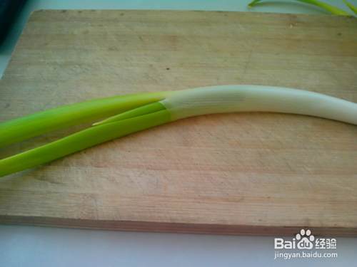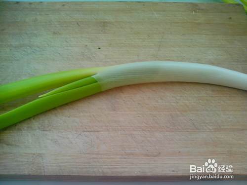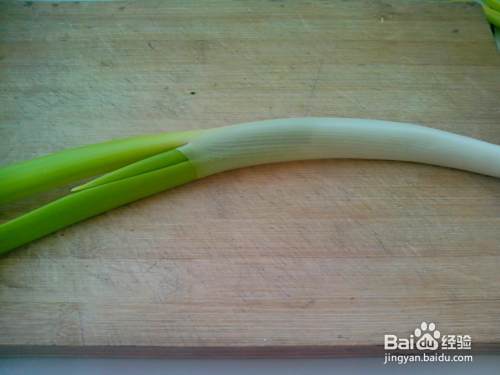 去新鲜的大葱一根去皮,洗干净以待备用。