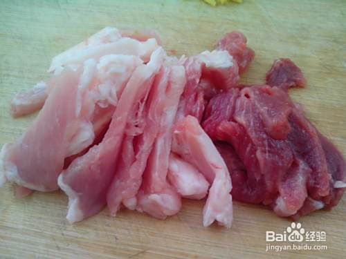 把里脊肉也用清水冲洗一下,然后切成细细的肉丝备用。